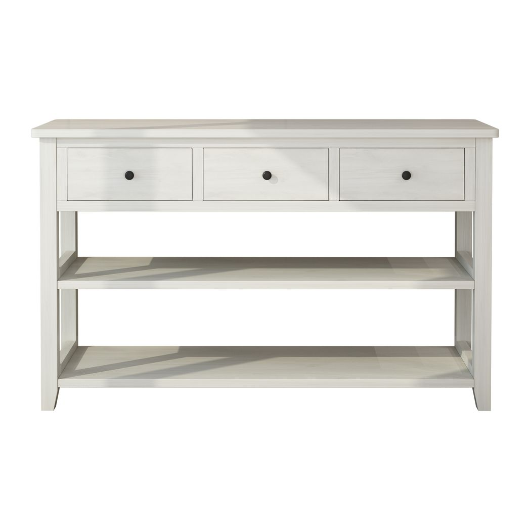 Console Table with Wood Frame and Legs, Sofa Table Entryway Table with 3 Drawers and 2 Open Shelves Antique White
