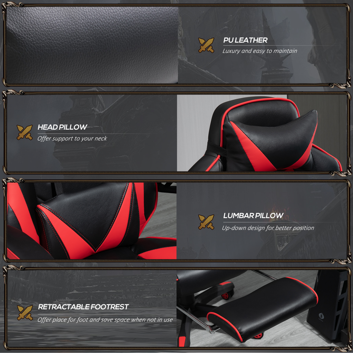 Gaming Chair Ergonomic Reclining w/ Manual Footrest Wheels Stylish Office Red