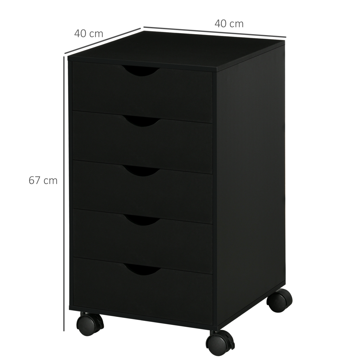 HOMCOM Mobile Vertical Filing Cabinet with 5 Drawers for Home Office, Black