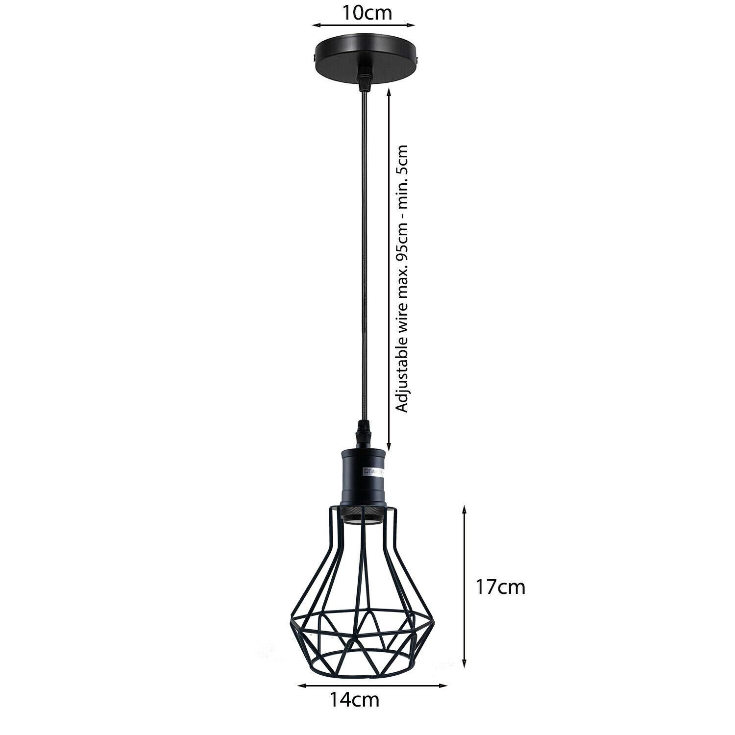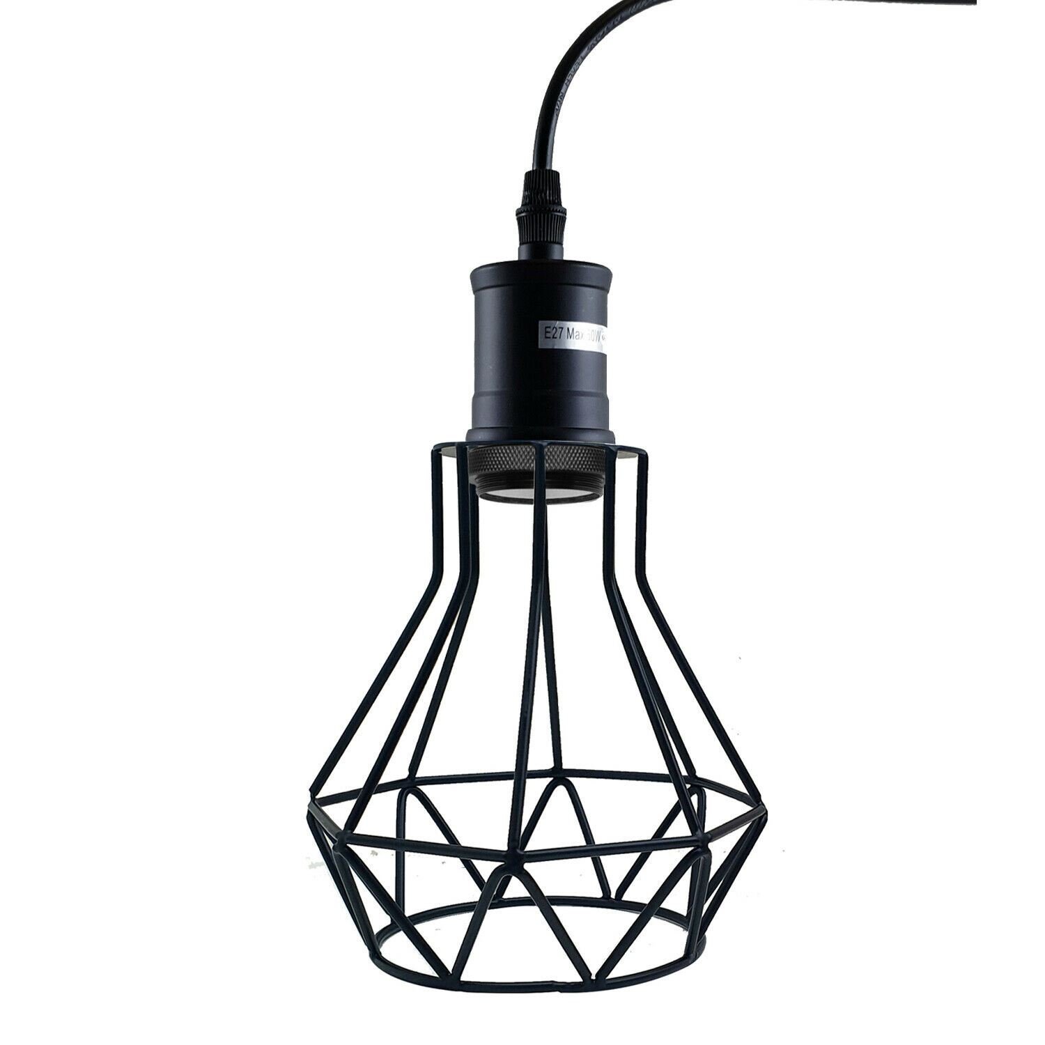 Industrial E27 Black Light Ceiling Pendant Light Cage Hanging Lampshade Fitting Kit