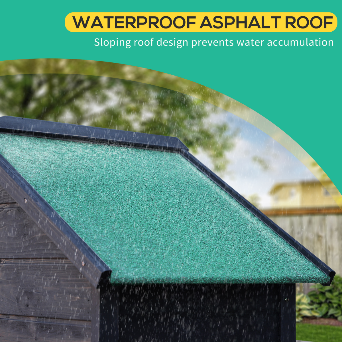 – Sloped roof to prevent water build-up, with a covering to help stop liquids seeping through