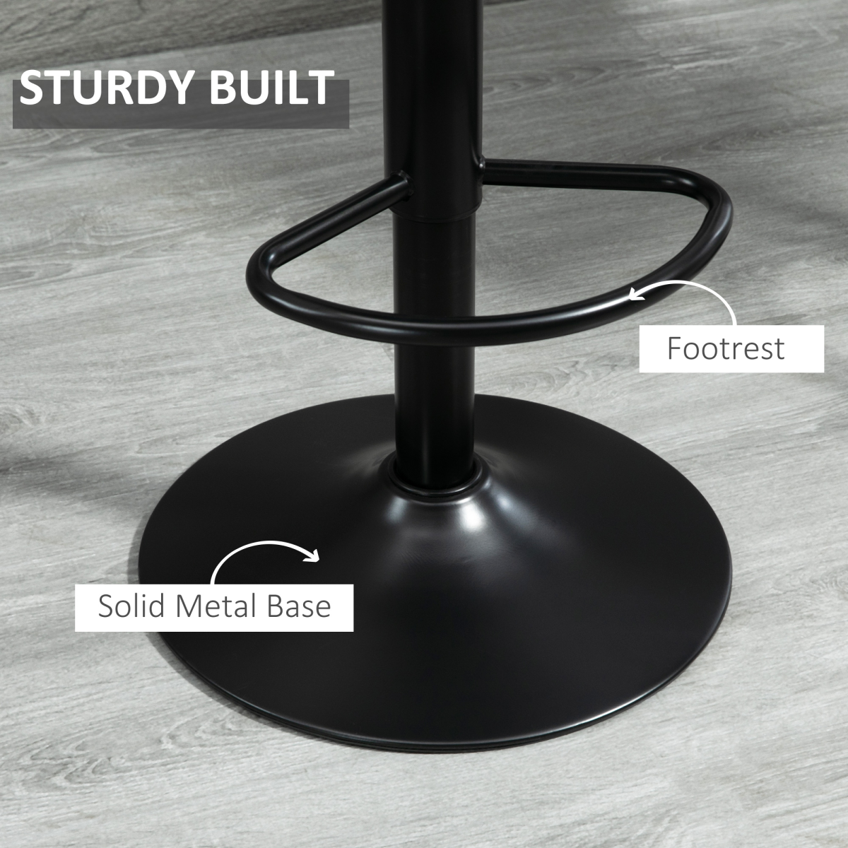 Set of two: Creates a matching look in your home and beyond. Can also be used for small area which require light use of the bar stool, i.e. cafes, small bars.Retro design: Slight faded microfibre cloth upholstery is suave and cool, with the seats crafted into a relaxed armless tub shape. Smooth surface of kitchen stool can be wiped clean easily.Adjustable and comfortable: Made of a solid and safe metal base, with a power coating for extra strength. Adjustable in height and fitted with a footrest for extra convenience. COMFORTABLE: The seats are filled with padding and feature a high back for extra support.Powder coated metal bases: A solid and strong foundation, with rounded bases for balance.Dimensions: 89-110H x 43W x 46.5Dcm. Seat: 43W x 36.5Dcm. Maximum load 120kg. Assembly required.